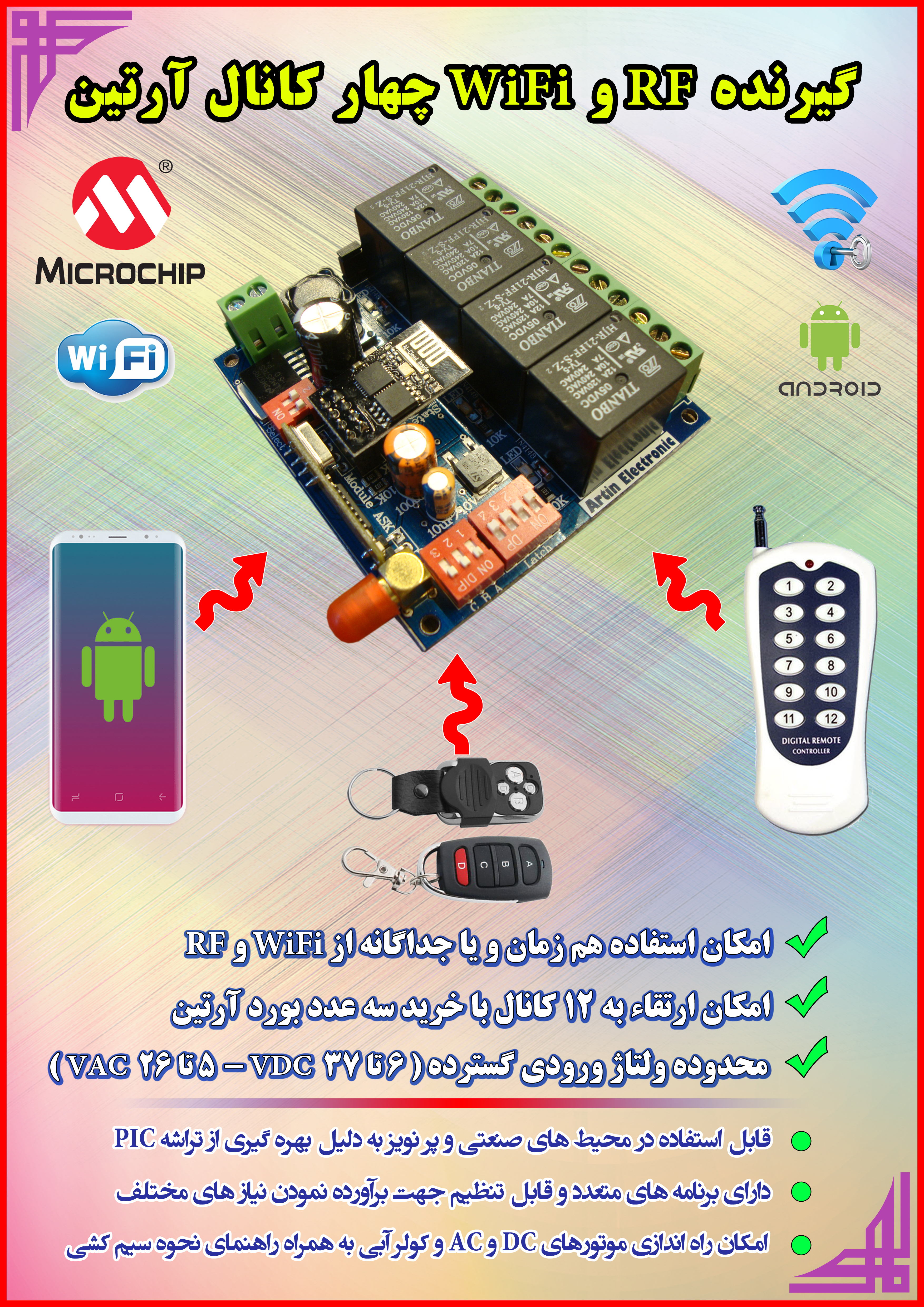 لینک دانلود اپلیکیشن: WiFi Controller لینک دانلود برگه راهنما: راهنمای گیرنده RF و WiFi آرتین در تنظیمات اپلیکیشن: IP = 192.168.4.1 و Port = 333 موضوعات مرتبط: خدمات آرتین الکترونیک [ دوشنبه بیست و یکم آبان ۱۳۹۷ ] [ 23:24 ] [ مرتضی فخیمی ]